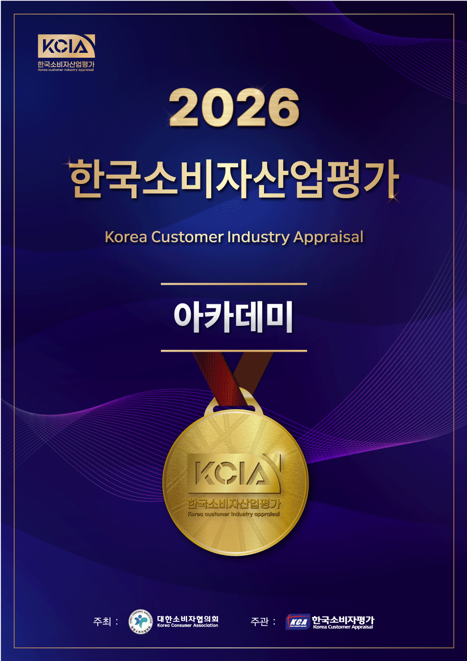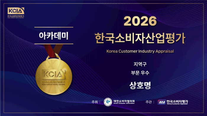 대한소비자협의회가 주최하고 한국소비자평가가 주관하는 <2026 KCIA 한국소비자산업평가 “아카데미”>는 국내 교육 산업의 발전을 도모하고, 실제 이용한 소비자의 평가를 바탕으로 양질의 교육 서비스를 제공하는 우수 교육 시설을 매년 선정하여 소비자에게 소개합니다.