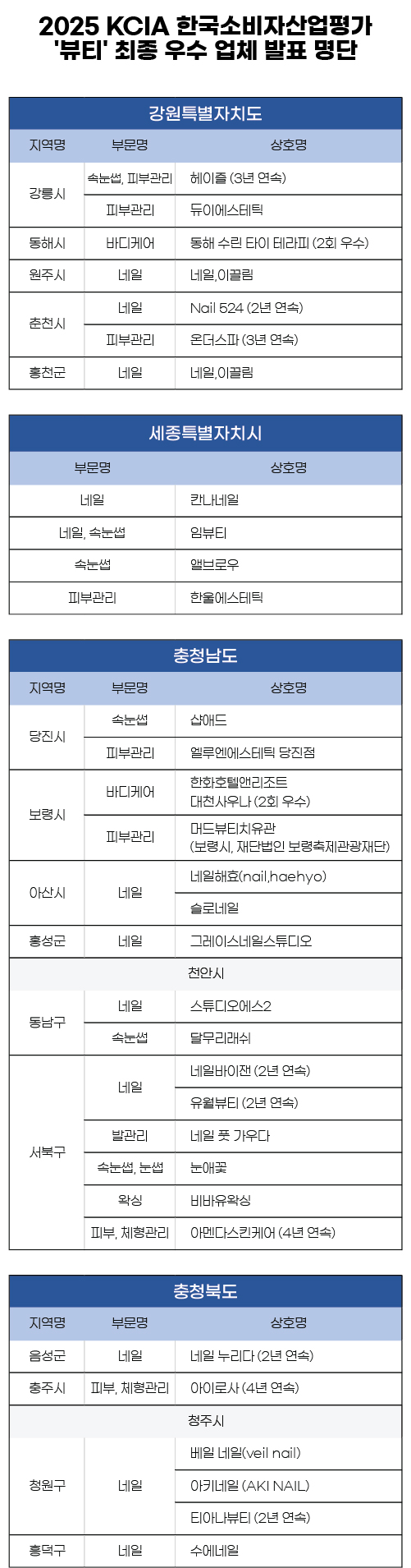2025 KCIA 한국소비자산업평가 ‘뷰티’ 강원, 세종, 충청 지역 결과 발표
