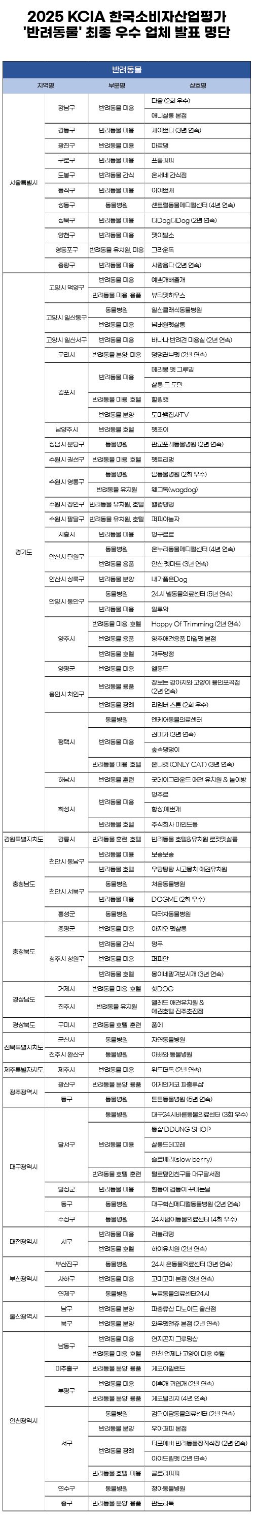 2025 KCIA 한국소비자산업평가 ‘반려동물’ 평가 결과 발표