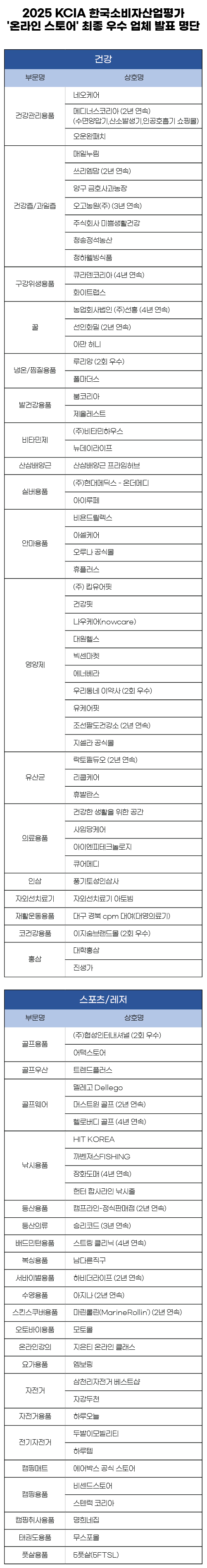 ’2025 KCIA 한국소비자산업평가 온라인 스토어-건강, 스포츠/레저 분야’ 평가 결과 발표