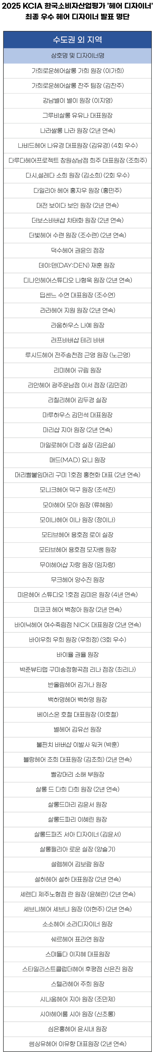 2025 KCIA 한국소비자산업평가 ‘헤어 디자이너’ 수도권 외 지역 결과 발표