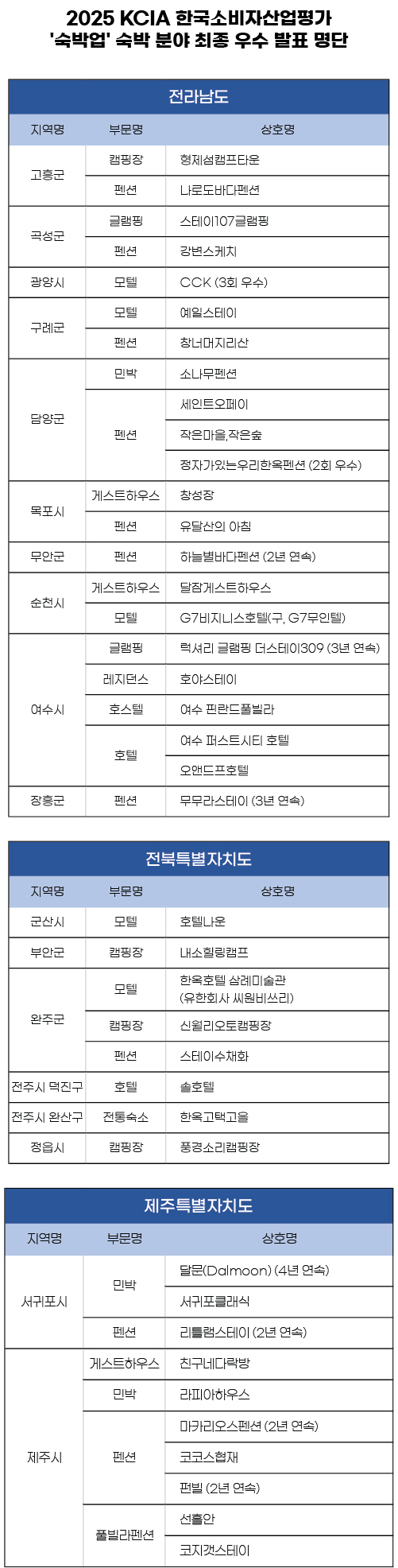 2025 KCIA 한국소비자산업평가 ‘숙박업’ 숙박 분야 전라, 제주 지역 평가 결과 발표