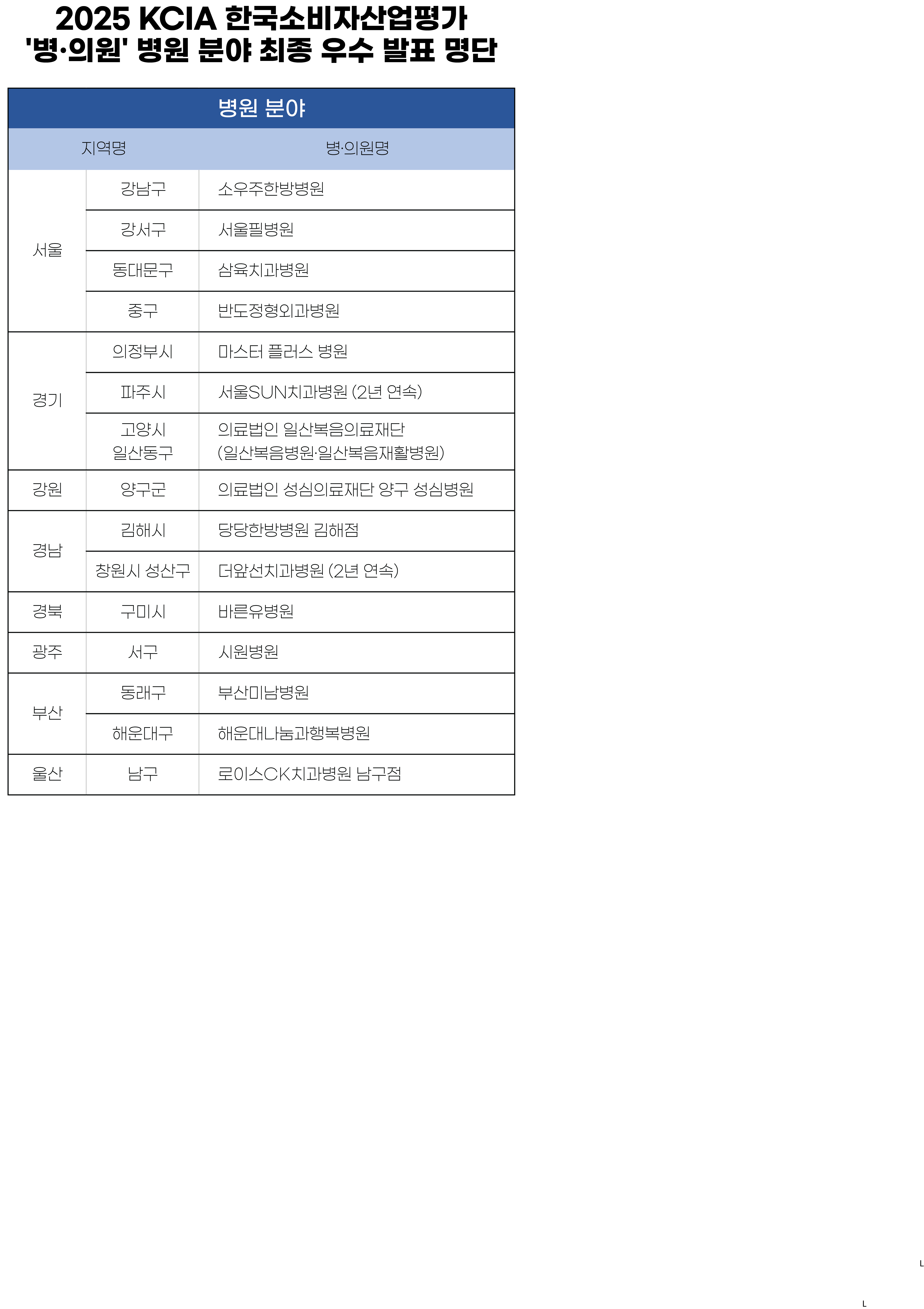 2025 KCIA 한국소비자산업평가 ’병·의원’ 병원 분야 결과 발표