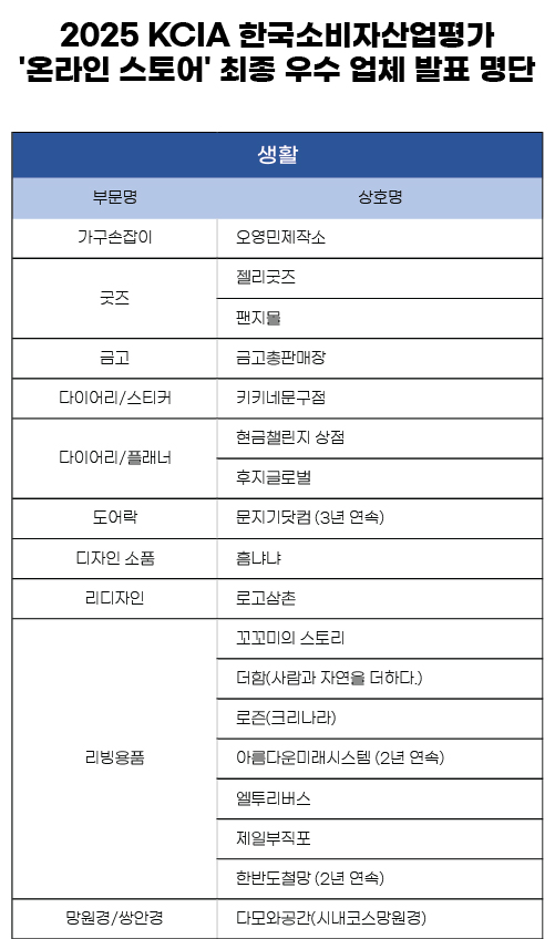 2025 KCIA 한국소비자산업평가 ’온라인 스토어’ 생활 분야 평가 결과 발표
